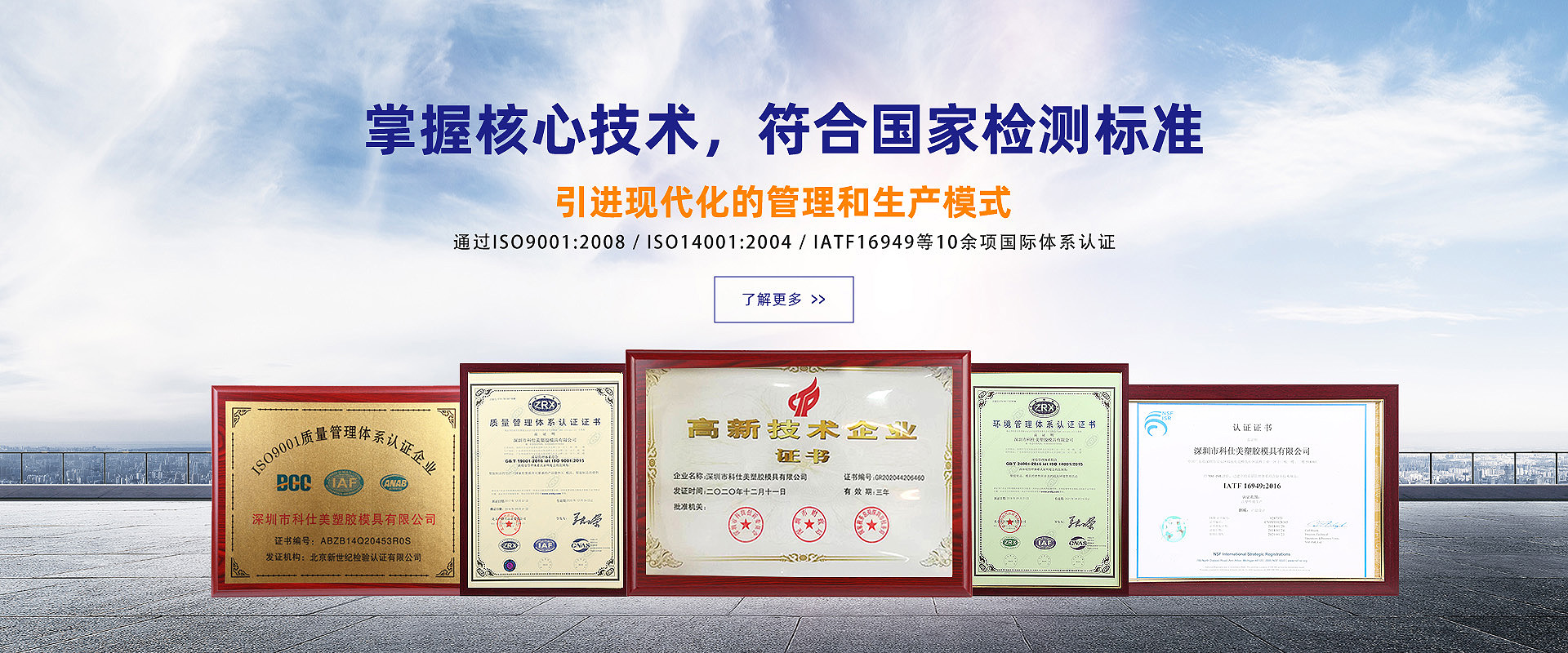 科仕美成立于2006年,是一家國家級高新技術企業,截止目前已經從事模具塑膠注塑行業17年,集專業雙色、多色塑膠模具設計、制造與注塑生產成型為一體科技型企業,引進現代化的管理和生產模式,通過并持續完善ISO9001:2008 / ISO14001:2004 / IATF16949國際體系認證。擁有完善的品質保證和服務體系。
